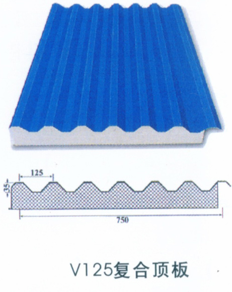 新疆彩鋼聚苯乙烯夾芯板(v125復(fù)合頂板)