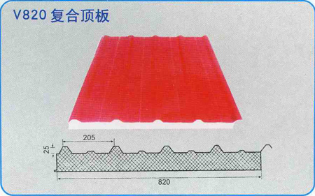 新疆彩鋼聚苯乙烯夾芯板(v820復(fù)合頂板)內(nèi)、外兩面為玻璃鋼板,夾芯層聚苯乙烯泡沫,經(jīng)德國真空技術(shù)高壓復(fù)合而成。夾芯板板表面光潔,污物能夠輕易除掉,整個面板色彩鮮艷,具有極佳的保光性。玻璃鋼板表面有一層性能優(yōu)異的膠衣,對大氣、水和一般濃度的酸、堿、鹽等介質(zhì)有著良好的化學(xué)穩(wěn)定性;表面光潔度高,保光性極佳,不變色、耐腐蝕、防光曬、抗老化。