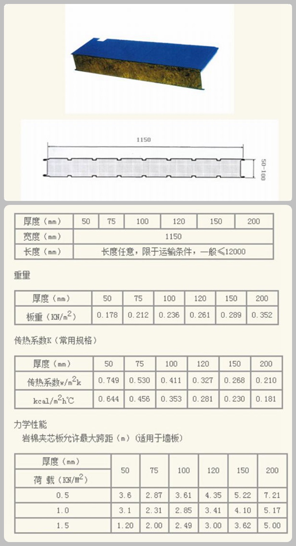 新疆彩鋼巖棉復合板剛度好:由于巖棉芯材與兩層鋼板粘結(jié)成一個整體,共同工作,在加上屋面板上表面起波壓型,其整體鋼度遠勝于壓型板夾巖棉(玻璃絲棉)的現(xiàn)場復合板材。夾芯板通過連接件與檁條固定后,大大提高了屋面的整體鋼度,加強了屋面整體工作性能。選用巖棉夾芯板,可采用較大檁距,故可節(jié)省檁條用量1/3~2/3。