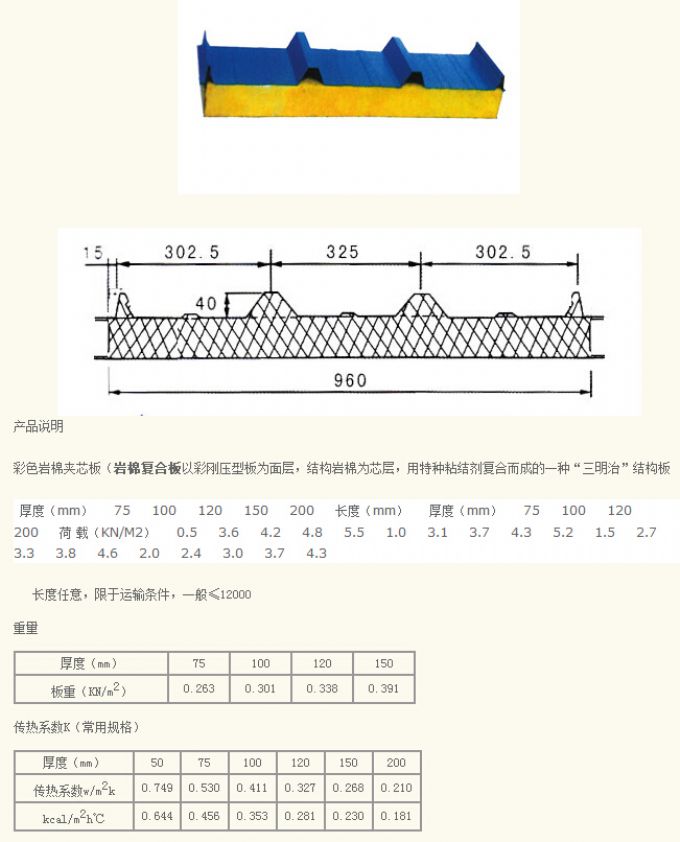 新疆彩鋼彩色巖棉復(fù)合板剛度好:由于巖棉芯材與兩層鋼板粘結(jié)成一個整體,共同工作,在加上屋面板上表面起波壓型,其整體鋼度遠(yuǎn)勝于壓型板夾巖棉(玻璃絲棉)的現(xiàn)場復(fù)合板材。夾芯板通過連接件與檁條固定后,大大提高了屋面的整體鋼度,加強(qiáng)了屋面整體工作性能。選用巖棉夾芯板,可采用較大檁距,故可節(jié)省檁條用量1/3~2/3。