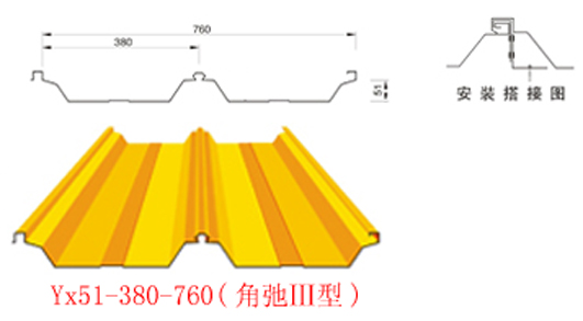 YX51-380-760型(角弛)彩色壓型鋼板特點: